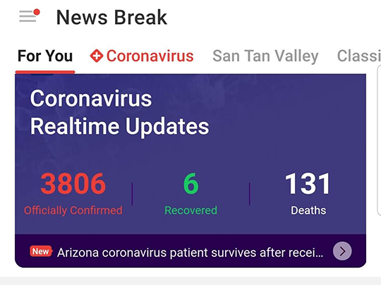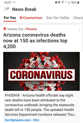 While exiting the "Coronavirus" header, I noticed this headline, from the local Phoenix Fox outlet, published 39 minutes prior to me reading it...clearly defining my point...